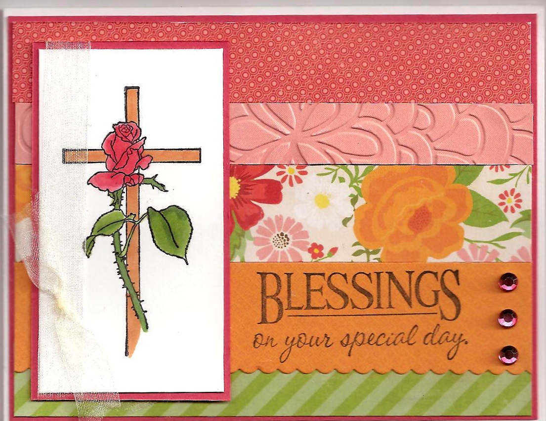 I thought this cross with the rose would be perfect. The sentiment was the only thing I could find that kinda went with it. On the inside of the card, I stamped Happy Birthday to make it all go together. What do you think about this one?